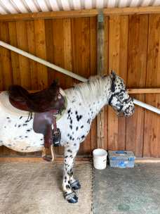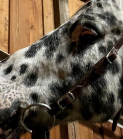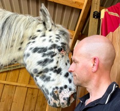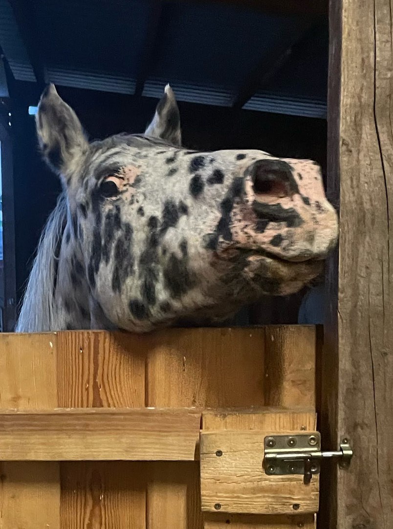 Auch war bereits beim Kauf klar, dass bereits eine Vorschädigung der Augen bestand und im Alter mit schleichender Erblindung zu rechnen sein wird. Magic war immer ein enorm cooles und trittsicheres Pferd. Und er konnte bis zur vollständigen Erblindung den Sehkraftverlust so gut kompensieren, dass mir erst auffiel, dass er gar nichts mehr sieht, als er anfing zu stolpern, enorm schreckhaft und geräuschsensibel wurde und auch im Stall etwas schusseliger unterwegs war. Also stellten wir um den Jahreswechsel 2020/2021 das Reiten bis auf weiteres ein. Magic bewegte sich im Stall nach kurzer Zeit wieder sicher und auf den Zentimeter genau orientiert, meine Frau, unsere Reitbeteiligung und ich mussten aber darauf achten, dass nichts im Weg herumsteht, was da nicht hingehört und immer mit Magic zu reden, auch beim Misten, wenn man die Schubkarre irgendwo in den Weg stellt.
