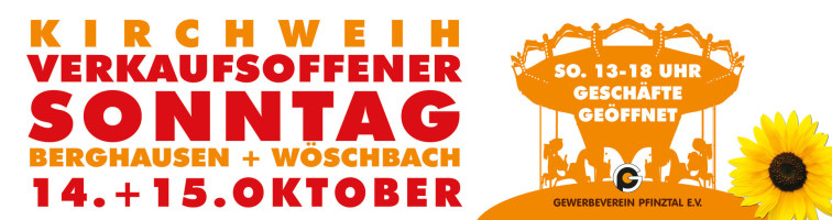Verkaufsoffener Sonntag in Wöschbach und Berghausen am dritten Sonntag (20.10.2019) im Oktober.